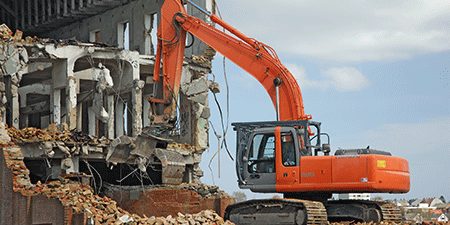 一般住宅から大型物件まで、あらゆる建物の解体工事を行っています。工事にはそれぞれの建物構造に合った重機を使用しています。